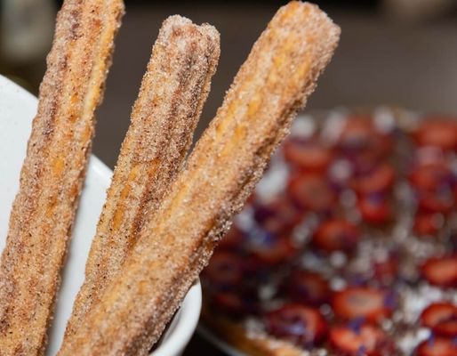 Donut sticks rolled in Cinnamon Sugar. Don't forget to add your Dipping sauce!